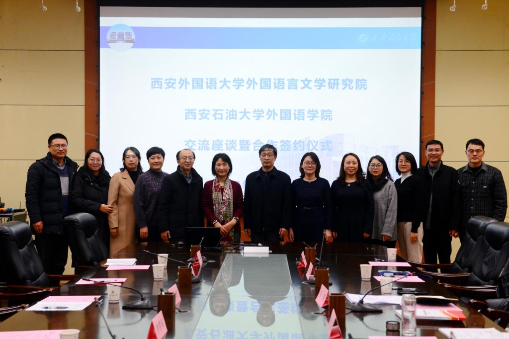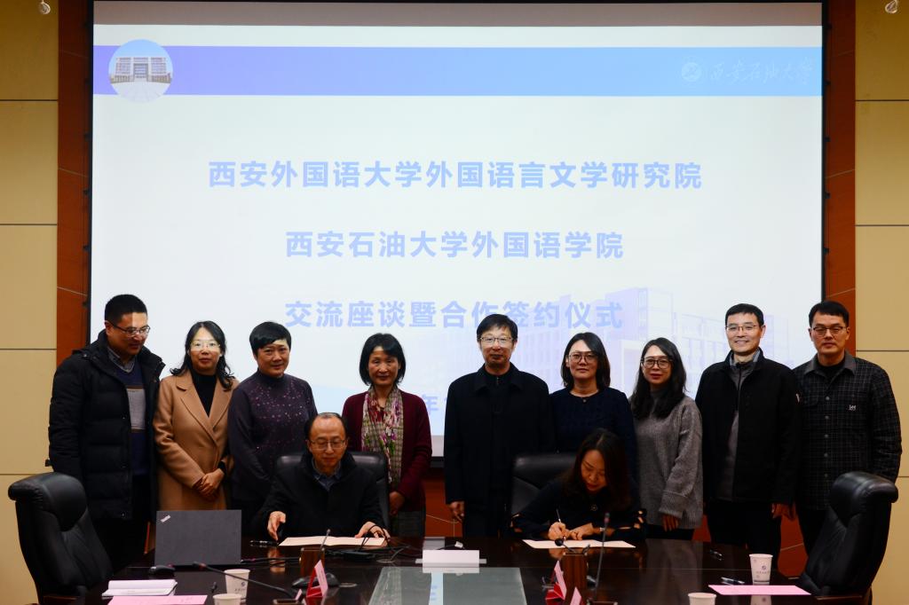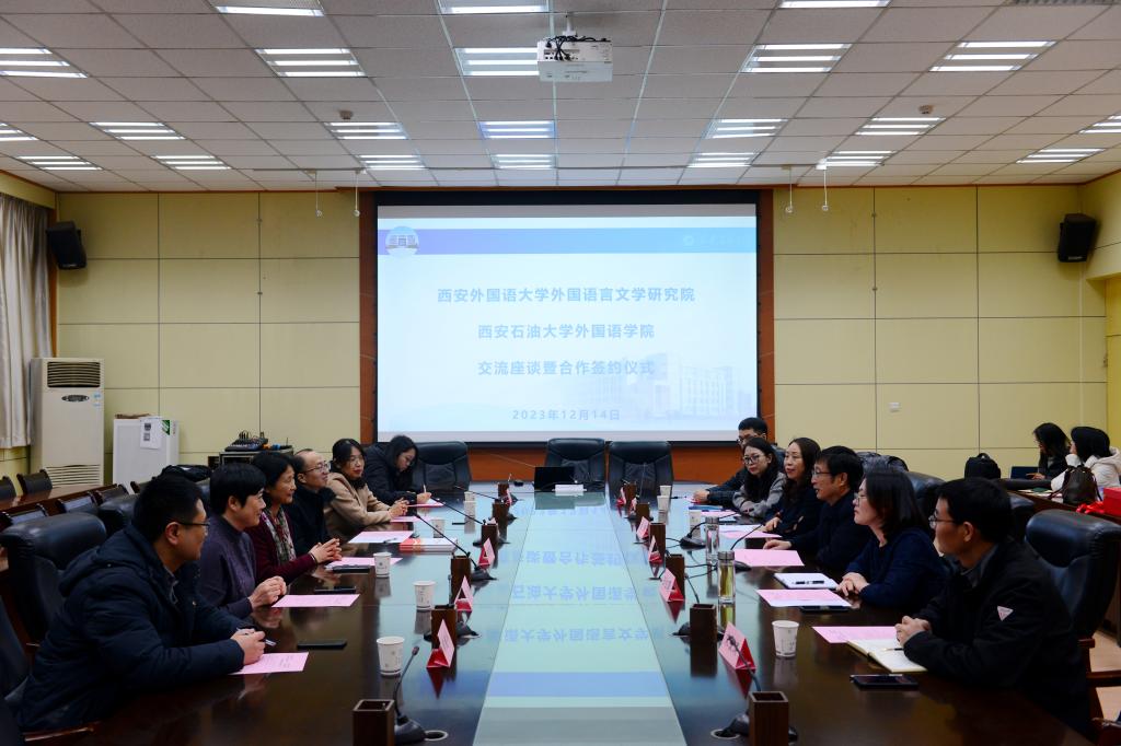 12月14日下午,我校外國(guó)語(yǔ)學(xué)院與西安外國(guó)語(yǔ)大學(xué)外國(guó)語(yǔ)言文學(xué)研究院交流座談會(huì)暨合作簽約儀式在雁塔校區(qū)會(huì)議中心第一會(huì)議室舉行。西安外國(guó)語(yǔ)大學(xué)副校長(zhǎng)李雪茹,我校副校長(zhǎng)蘇文甫出席會(huì)議。會(huì)議由我校外國(guó)語(yǔ)學(xué)院副院長(zhǎng)劉輝主持。