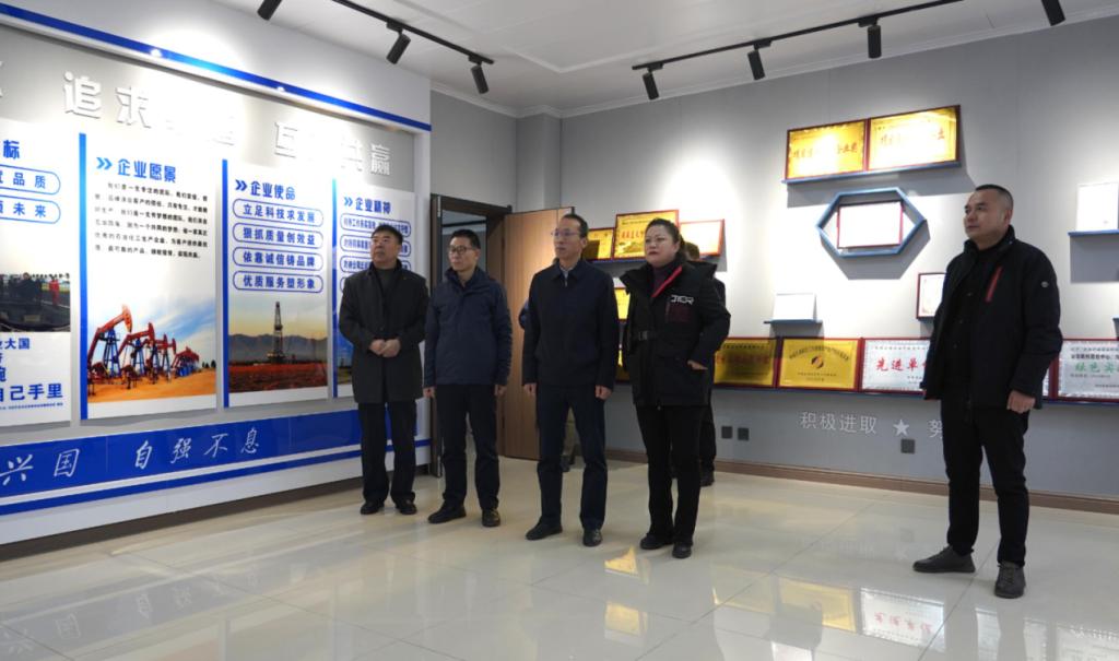 授牌儀式結束后,張君濤一行參觀了企業(yè)產品陳列館、自控中心、褐煤車間、纖維素車間、高分子聚合物車間、抗高溫降失水防塌車間,實地考察了學生實習環(huán)境和實習條件。