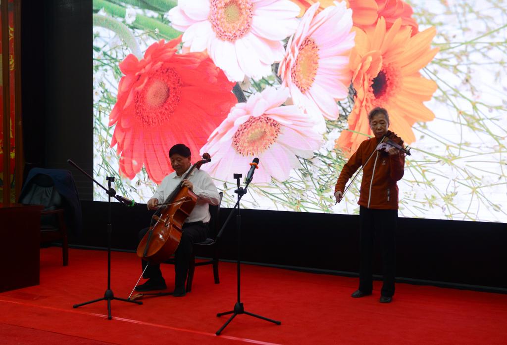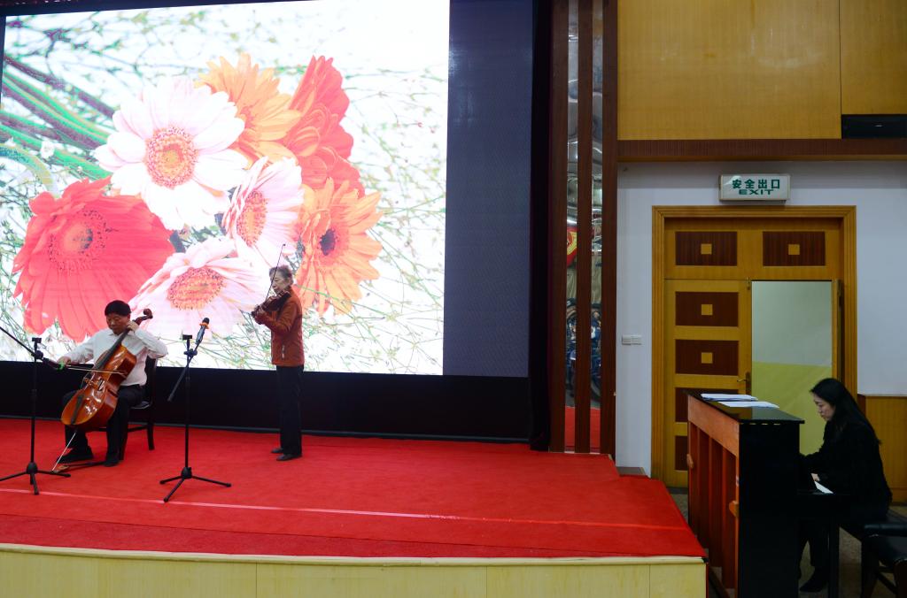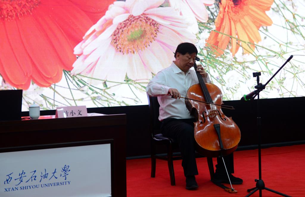 現(xiàn)場,葉小文分享了自己與音樂結(jié)緣的過程,講解了“樂”的教化作用。葉小文作為滿天星業(yè)余交響樂團(tuán)團(tuán)長兼首席大提琴演奏者,與滿天星業(yè)余交響樂團(tuán)小提琴演奏者、我校外國語學(xué)院教授張梅娟,在音樂系專業(yè)教師的鋼琴伴奏下,共同演奏了曲目《梁?!罚S后葉小文用大提琴獨(dú)奏了一曲《牧歌》。鋼琴跳躍音符的引入,配合著提琴的細(xì)膩流暢,以生動的音樂示范浸潤著師生的心靈,引發(fā)現(xiàn)場陣陣掌聲。
