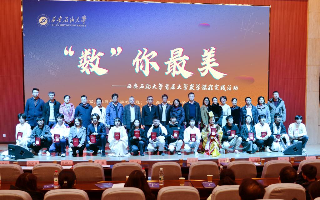 12月1日晚,由教務處、理學院、校團委主辦,理學院高等數(shù)學教學部、數(shù)學文化課程組、數(shù)學建模協(xié)會承辦的首屆大學數(shù)學課程實踐展演活動--“‘數(shù)’你最美”在鄠邑校區(qū)弘石學術報告廳舉行。校黨委副書記張木、副校長蘇文甫出席活動,并向每位參演學生頒發(fā)證書。教務處、高評中心、校團委、理學院相關負責人,數(shù)學學科教師代表以及400余名學生觀看了本次展演。
