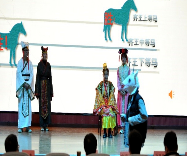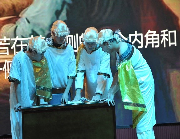 參加展演的16個節(jié)目分為課程實踐作品與文藝節(jié)目兩大類,來自10個院(系)的一百五十多位同學在舞臺上展示了他們探究數(shù)學啟蒙思想、對實際生活中建模的理解、對數(shù)學之美的發(fā)現(xiàn)。其中有根據(jù)數(shù)學家故事繪制的“數(shù)學漫畫”、有結合數(shù)學原理制作的“古代建橋黑科技之超強承重筷子橋”、有用Python編寫的函數(shù)動畫;舞臺劇《幾何原本》漫溯歷史長河、探索數(shù)學真諦,《王冠的秘密》《田忌賽馬》以夸張幽默的表演再現(xiàn)經典數(shù)學故事;小品《數(shù)游長安》讓數(shù)學問題和文化旅游巧妙碰撞;街舞《數(shù)學圖像秀》盡顯青春風采……。