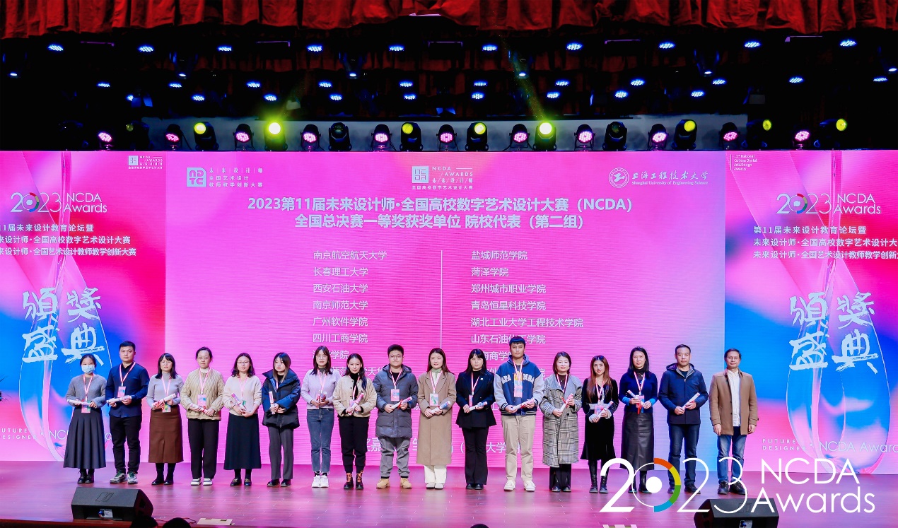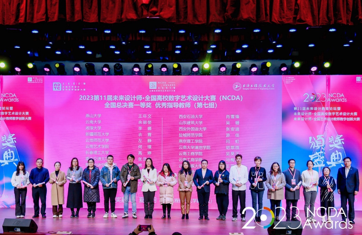 12月1日,由工業(yè)和信息化部人才交流中心主辦的第11屆未來設(shè)計(jì)師–全國高校數(shù)字藝術(shù)設(shè)計(jì)大賽頒獎(jiǎng)盛典在上海隆重舉行。我校人文學(xué)院副院長(zhǎng)方松林、設(shè)計(jì)系教師肖雪鋒和王姿分別作為全國總決賽一等獎(jiǎng)優(yōu)秀指導(dǎo)教師、全國總決賽一等獎(jiǎng)獲獎(jiǎng)院校代表受邀出席。