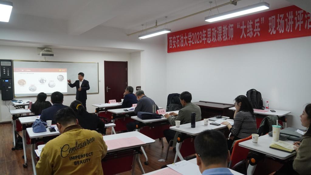 為深入學(xué)習(xí)貫徹黨的二十大精神,認(rèn)真落實(shí)習(xí)近平總書(shū)記在學(xué)校思想政治理論課教師座談會(huì)上的重要講話(huà)精神,按照省委教育工委、省教育廳《關(guān)于開(kāi)展2023年度陜西學(xué)校思政課教師“大練兵”省級(jí)展示活動(dòng)的通知》(陜教工宣辦〔2023〕33號(hào))文件要求,11月18日,我院在明德校區(qū)舉行2023年思政課教師“大練兵”思政課程組展示活動(dòng)。此次活動(dòng)分為座談會(huì)和現(xiàn)場(chǎng)講評(píng)兩個(gè)階段。