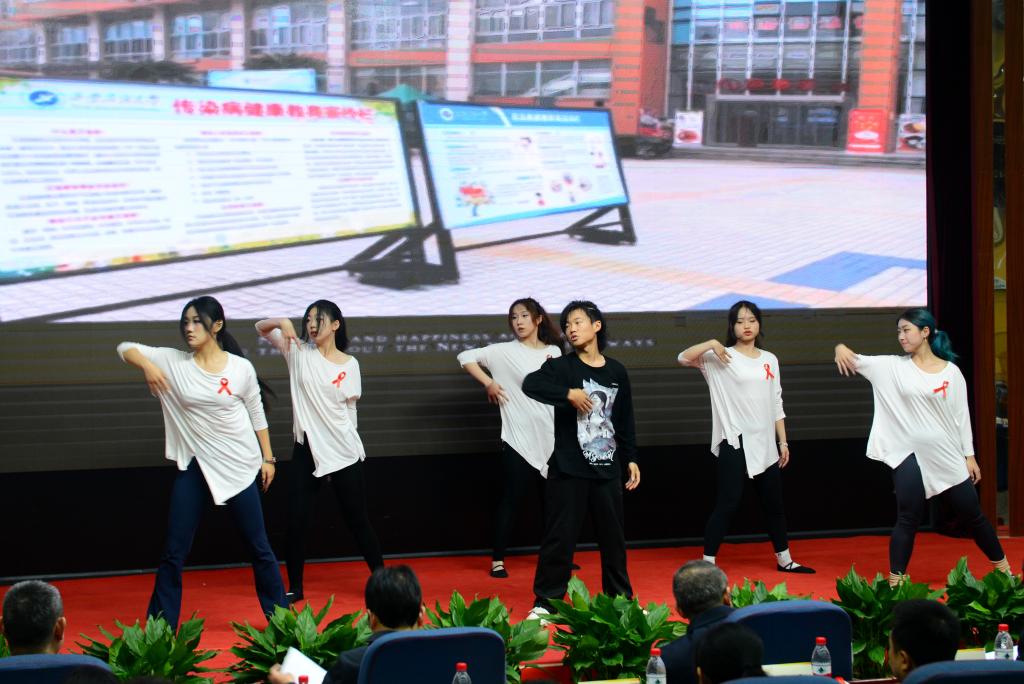 活動中,同學們穿插表演了舞蹈《擁抱我》、舞蹈《心的呼喚》、三句半《新四大才子》、跆拳道和舞臺劇《我的“艾”情》等節(jié)目,既展示了同學們的青春活力,也用生動活潑、簡單易懂的形式告訴大家有關艾滋病的知識。通過人物角色扮演講述在不同場景中出現(xiàn)的易感染艾滋病病毒的行為,以創(chuàng)設真實情境和模擬現(xiàn)實人物的形式引導同學們對艾滋病防控進行深入的思考,找到預防疾病侵襲、得到幸福生活的路徑和答案。