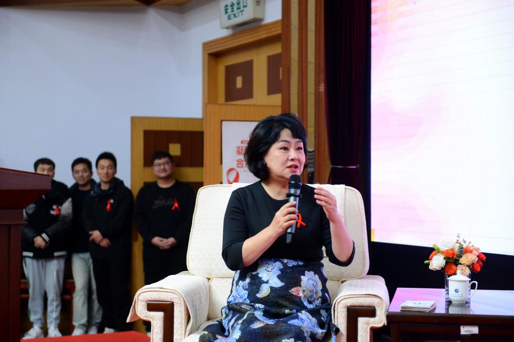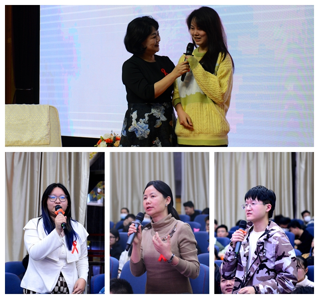 訪談環(huán)節(jié),“紅絲帶”健康大使鞠萍與孫永濤教授、任強所長通過專家訪談、師生提問互動等方式,娓娓道來,為同學們詳細講解了艾滋病的傳播途徑、感染風險、預防措施,引導學生樹立正確的價值觀,正確認識艾滋病,對待艾滋病,共同維護健康和諧的校園生活,努力成長為能吃苦、敢擔當、有理想、肯奮斗的新時代好青年。