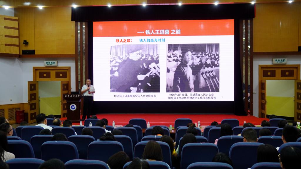 中國石油政研會特約研究員、我校鐵人精神研究中心首席專家郭崗彥以“感悟鐵人魅力,解析精神密碼”為題,剖析了鐵人精神的深刻內(nèi)涵,闡釋了鐵人精神的時代價值。