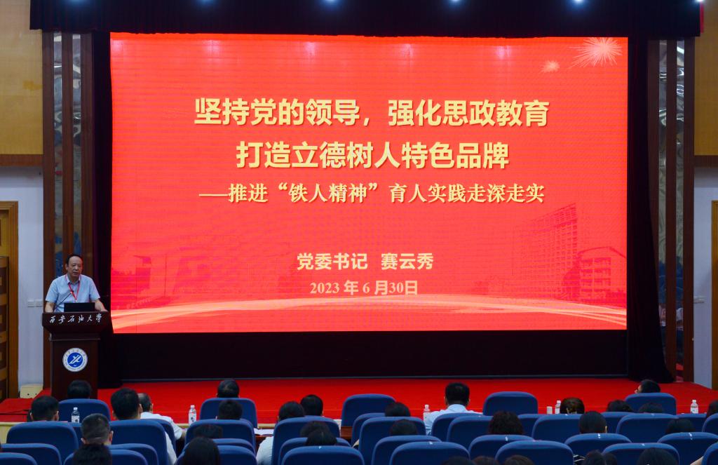張木在致辭中指出,西安石油大學長期以來堅持石油精神辦學,鐵人精神育人,延安精神鑄魂,構(gòu)建了以“四維兩翼一中心”為基本架構(gòu)的思政課育人體系,形成了“為人誠實、基礎(chǔ)扎實、作風樸實、工作踏實、開拓創(chuàng)新”的“四實一新”人才培養(yǎng)特色。他強調(diào),作為第一批納入中國共產(chǎn)黨人精神譜系的偉大精神,鐵人精神無論在過去、現(xiàn)在還是將來,都有著不朽的時代價值和永恒的生命力。