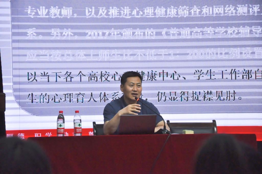 下午,陜西師范大學(xué)學(xué)生就業(yè)指導(dǎo)服務(wù)中心副主任姚崇教授作了題為《唯有以心育人方能立德樹人》的專題培訓(xùn)。姚崇從心理育人與思政育人的內(nèi)在契合出發(fā),探討通過增強(qiáng)“三大融合”、強(qiáng)化“四大保障”等方式,多措并舉打開高校心理健康教育工作新思路。