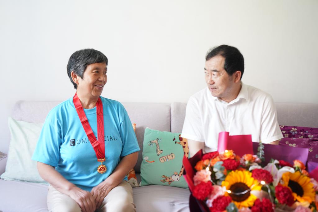 副校長蘇文甫先后走訪慰問了王新民、孫大鑫兩位離退休老黨員并為他們佩戴了“光榮在黨50年”紀念章。蘇文甫談到,光榮在黨50年的人生歷程,是回顧過去、不忘初心的總結銘記和誓言重溫,也是牢記使命、勇毅前行、開啟新征程的再次起航。他希望兩位老同志能夠保重身體,繼續(xù)關注、關心學校的發(fā)展,為學校長遠發(fā)展提供寶貴的智力支持。