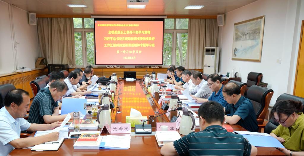 本次專題學習班采用視頻輔導、分組領學、個人學習等多種方式進行。全體學員認真聽取了趙一德同志在全省市廳級主要領導干部專題學習班第一期上的主題輔導報告暨黨課,觀看了省委教育工委書記劉建林同志的主題輔導報告暨黨課視頻,聽取了《貫徹落實習近平總書記重要講話精神,奮力譜寫中國式現(xiàn)代化建設的陜西新篇章》專題講座,聽取了省委教育工委委員、省教育廳副廳長王海波在結(jié)業(yè)式上的總結(jié)講話。在分組領學和專題研討環(huán)節(jié),校黨委理論學習中心組帶頭領學了習近平總書記在聽取陜西省委和省政府工作匯報時的重要講話、習近平主席在中國-中亞峰會上的主旨講話、習近平總書記歷次來陜考察重要講話重要指示等內(nèi)容。學員們緊扣培訓主題,結(jié)合學校事業(yè)發(fā)展和“十四五”發(fā)展規(guī)劃的目標任務和個人學習、工作實際,談體會、議收獲,談設想、提建議,深入開展學習研討,交流分享心得體會。