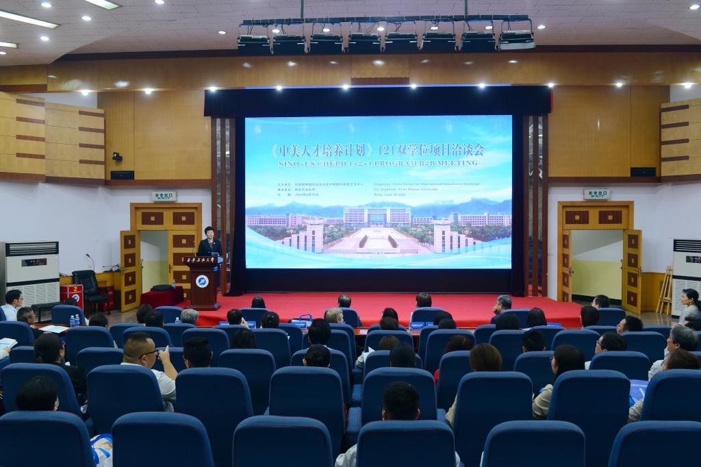 6月16日,由中國(guó)教育國(guó)際交流協(xié)會(huì)中教國(guó)際教育交流中心主辦,我校承辦的2023年《中美人才培養(yǎng)計(jì)劃》121雙學(xué)位項(xiàng)目洽談會(huì)在我校雁塔校區(qū)會(huì)議中心學(xué)術(shù)報(bào)告廳舉行。陜西省教育廳二級(jí)巡視員董俠,我校副校長(zhǎng)張榮軍,中教國(guó)際教育交流中心主任張靖、副主任吳琴,美國(guó)州立大學(xué)與學(xué)院學(xué)會(huì)及美國(guó)加州州立大學(xué)圣貝納迪諾、美國(guó)塞勒姆州立大學(xué)等121項(xiàng)目7所美方高校代表,全省27所高校代表,我校國(guó)際交流與合作處、教務(wù)處、國(guó)際教育學(xué)院及各院(系)負(fù)責(zé)人等近百名中外嘉賓出席會(huì)議,共商中美教育合作交流大計(jì)。