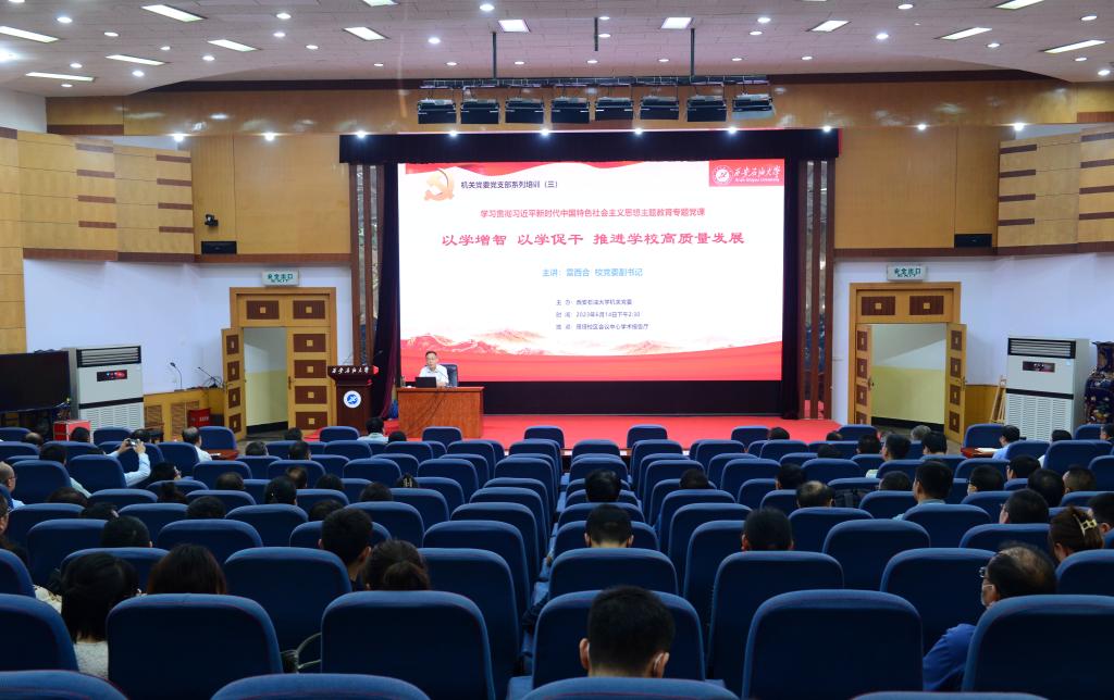 6月14日下午,校黨委副書記雷西合在雁塔校區(qū)會議中心學術報告廳為機關黨員講授了題為《以學增智 以學促干 推進學校高質量發(fā)展》的學習貫徹習近平新時代中國特色社會主義思想主題教育專題黨課。機關黨委280余名黨員聆聽了黨課。黨課由機關黨委書記吳復雷主持。