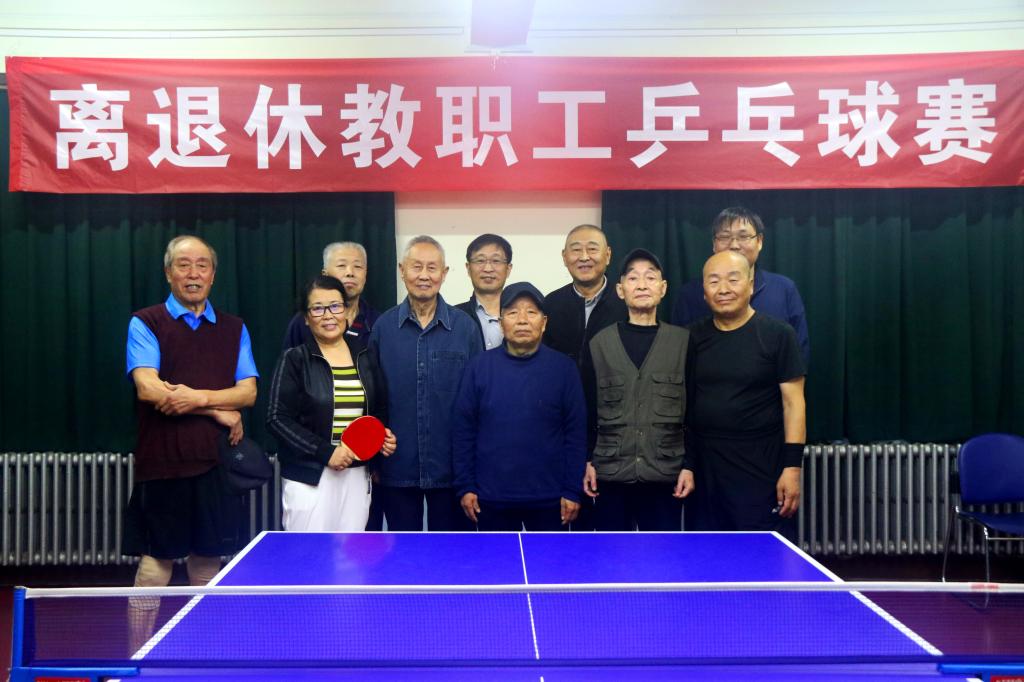 調(diào)研結(jié)束后,蘇文甫為離退休教職工乒乓球比賽的獲獎(jiǎng)?wù)哳C獎(jiǎng)并合影留念。