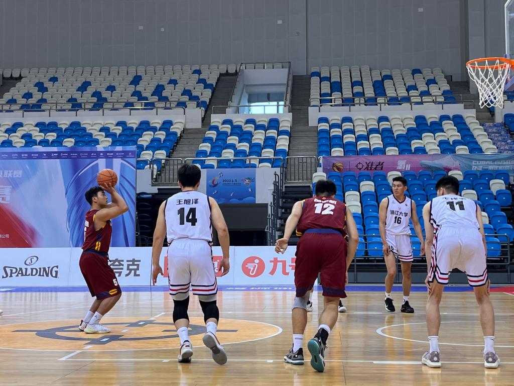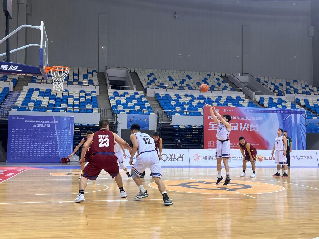 在全國賽小組賽中,首場面對南區(qū)球隊安徽理工大學(xué)。首次面對南方球隊小、快、靈的打法,我方隊員強硬防守、耐心進攻,由于地理位置原因,首發(fā)隊員們很快出現(xiàn)了體力不支等情況,主教練迅速調(diào)整陣容,給予休息,隊員們咬牙堅持拼搏,始終保持著領(lǐng)先的優(yōu)勢,最終以98:78的比分戰(zhàn)勝安徽理工大學(xué),首戰(zhàn)告捷。5月20日我校迎來第二場小組賽,對陣曾兩次獲得全國總冠軍的中國刑事警察學(xué)院。開局面對對方全場緊逼,五上五下的戰(zhàn)術(shù),我校隊員咬緊牙關(guān)、穩(wěn)扎穩(wěn)打,上半場結(jié)束時雙方比分膠著,下半場我校隊員手感火熱,率先進入節(jié)奏,打出一波小高潮,最終以71:48大比分戰(zhàn)勝中國刑事警察學(xué)院。5月21日我校迎來小組賽第三場比賽,對戰(zhàn)南區(qū)冠軍浙江大學(xué)。上半場比賽雙方難舍難分,以平局結(jié)束。下半場,我校隊員狀態(tài)回暖,連續(xù)三分出手,多次打成二加一,逐漸拉開分差,最終以79:64戰(zhàn)勝南區(qū)冠軍浙江大學(xué)。我校以小組賽全勝的優(yōu)異戰(zhàn)績出線,晉級到后續(xù)的淘汰賽中。