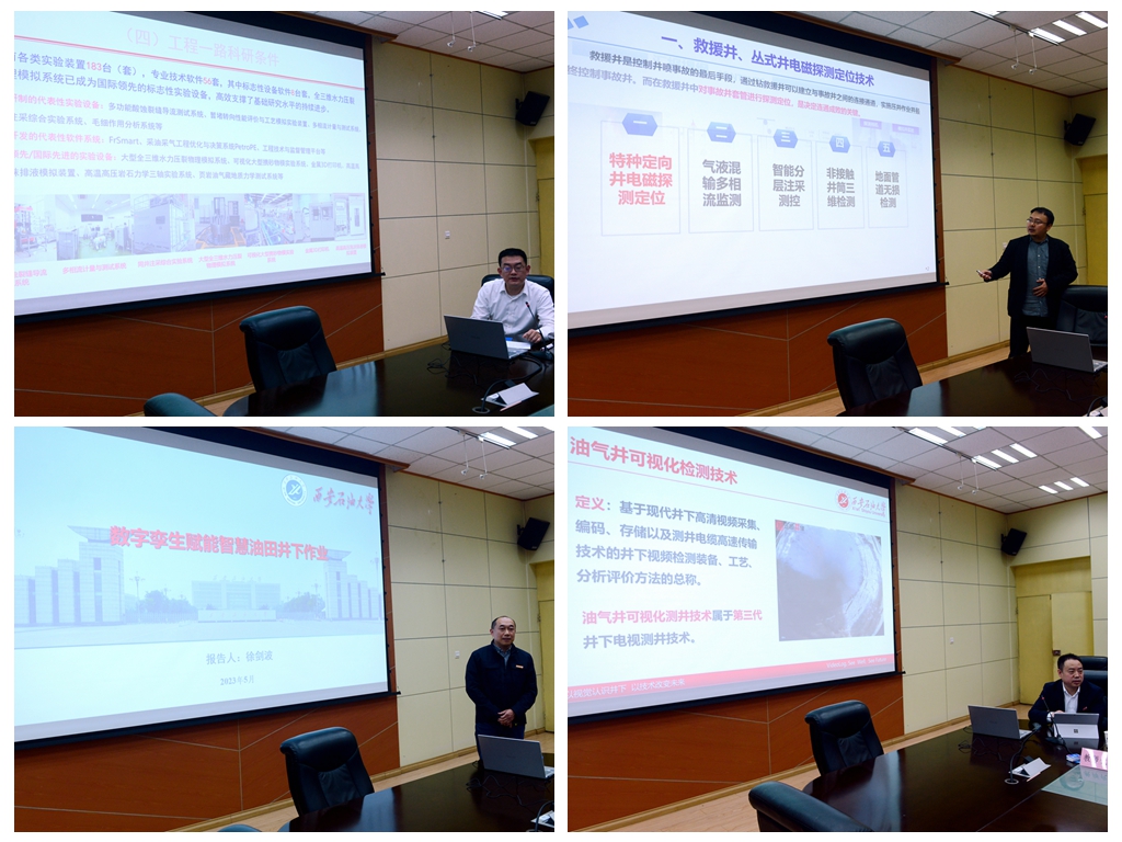 會(huì)上,勘探院工程業(yè)務(wù)部綜合辦主任李濤介紹了勘探院的基本情況以及工程一路的組織架構(gòu)和取得的主要業(yè)績。我校嚴(yán)正國、黨博、徐劍波分別匯報(bào)了所在團(tuán)隊(duì)的研究成果、核心技術(shù)和推廣應(yīng)用情況。隨后,與會(huì)人員圍繞勘探開發(fā)領(lǐng)域的相關(guān)技術(shù)和合作方向進(jìn)行了深入交流和探討。