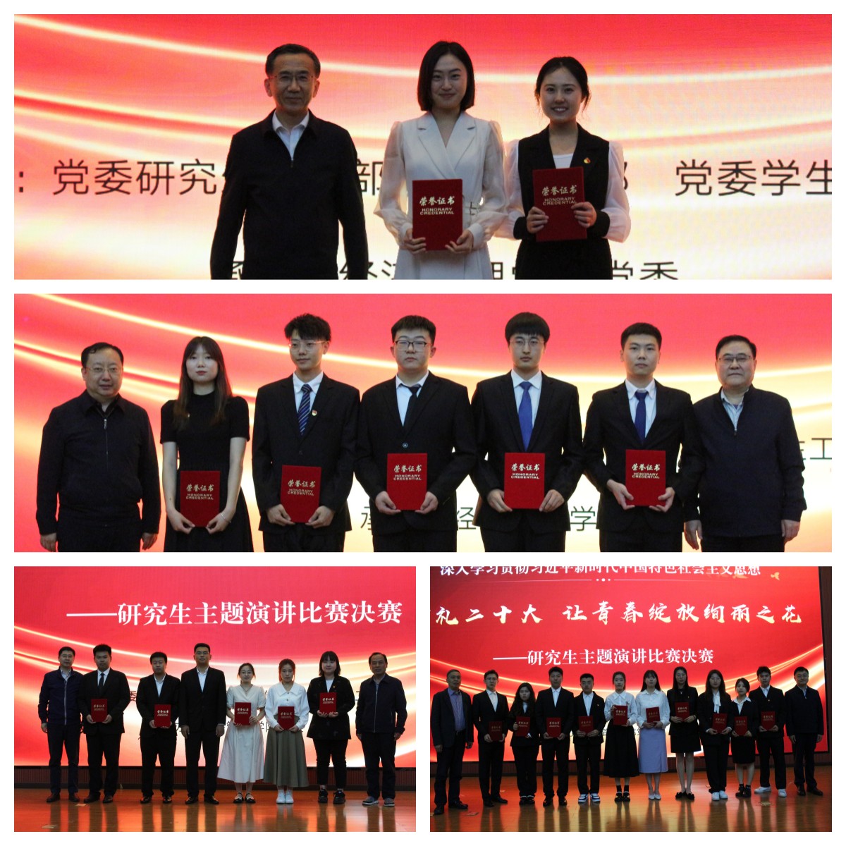 活動(dòng)舉辦恰逢五四青年節(jié),張木代表校黨委向全校廣大研究生青年致以節(jié)日的問(wèn)候!他充分肯定了我校研究生思想政治教育和青年組織建設(shè)取得的成績(jī)。他指出,本次演講比賽準(zhǔn)備充分,組織嚴(yán)密,選手表現(xiàn)優(yōu)異,充分展示了研究生深入學(xué)習(xí)貫徹黨的二十大精神的成果和意氣風(fēng)發(fā)、蓬勃向上的精神風(fēng)貌。