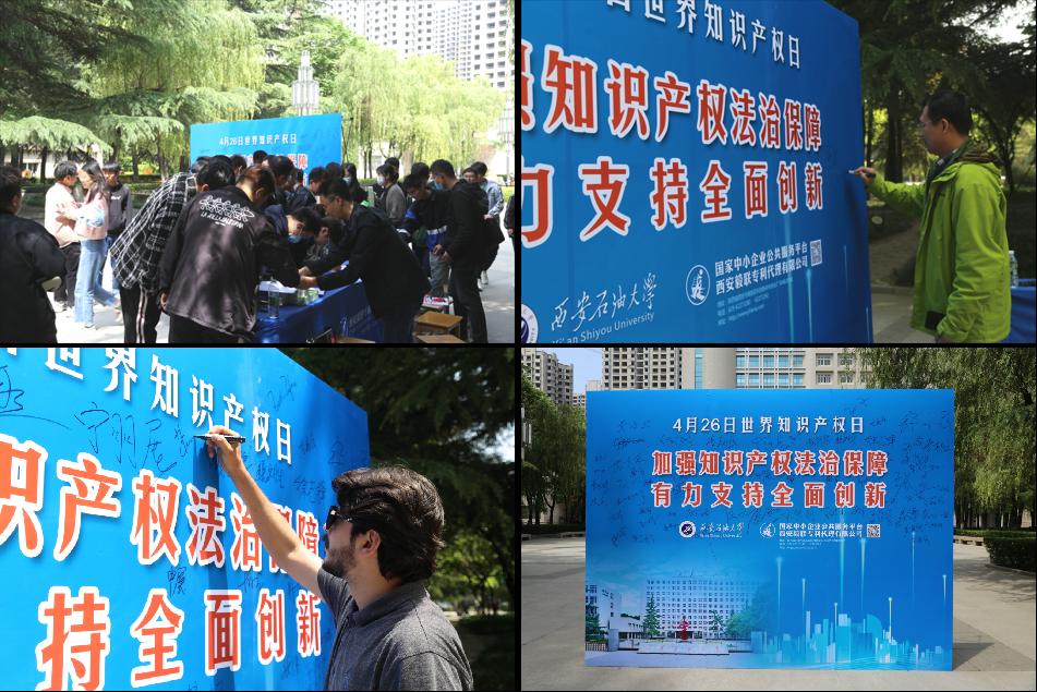 本次“世界知識(shí)產(chǎn)權(quán)日”系列宣傳活動(dòng)受到了學(xué)校師生的廣泛關(guān)注和歡迎。在東方石油樓前設(shè)置知識(shí)產(chǎn)權(quán)宣傳幕墻,活動(dòng)現(xiàn)場(chǎng)設(shè)立咨詢臺(tái),向師生宣傳、講解知識(shí)產(chǎn)權(quán)保護(hù)相關(guān)法律法規(guī)、申請(qǐng)專利和版權(quán)的方法和途徑、商標(biāo)的注冊(cè)與續(xù)展等知識(shí),發(fā)放宣傳資料等1500余份,解答師生咨詢近40人次,并且?guī)熒筒糠至魧W(xué)生們?cè)谛麄髂粔ι羡x躍簽名,以表達(dá)對(duì)知識(shí)產(chǎn)權(quán)的尊重與維護(hù)。