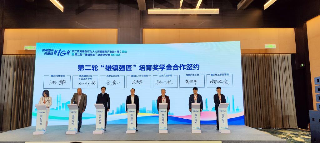 4月25日,我校受邀參加“奔甬而來·浙里鎮(zhèn)High”浙江鎮(zhèn)海綠色石化人力資源服務產(chǎn)業(yè)園(籌)啟動暨第二輪“雄鎮(zhèn)強匠”培育獎學金簽約儀式。學生工作部(處)部(處)長、就業(yè)指導中心主任王亮帶隊出席并代表學?,F(xiàn)場簽約。