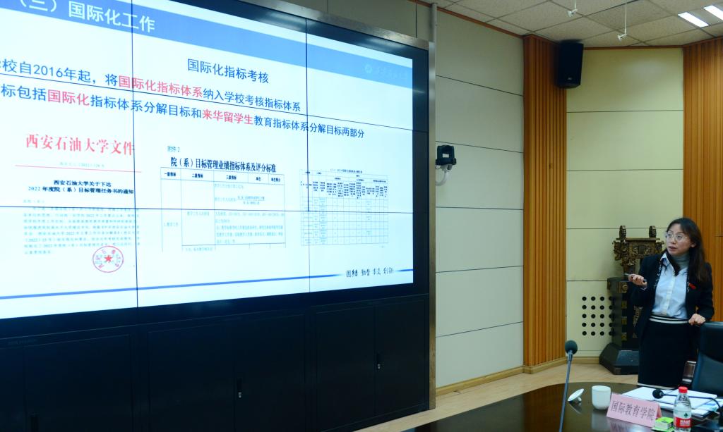 審查說明會上,國際教育學院(絲路能源學院)負責人作學校來華留學生教育及再認證自評自改工作匯報。