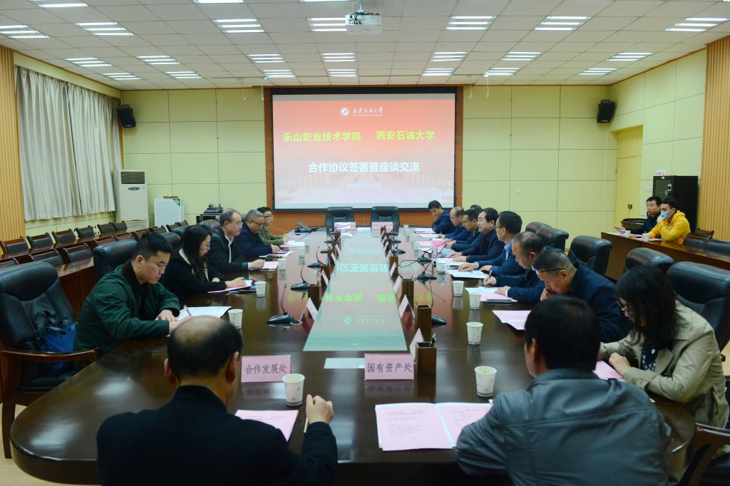 3月29日上午,樂山職業(yè)技術(shù)學(xué)院院長劉忠?guī)ш爜硇i_展合作交流。座談交流會在雁塔校區(qū)會議中心第一會議室召開,我校校長李天太出席會議。會議由我校黨委副書記雷西合主持。