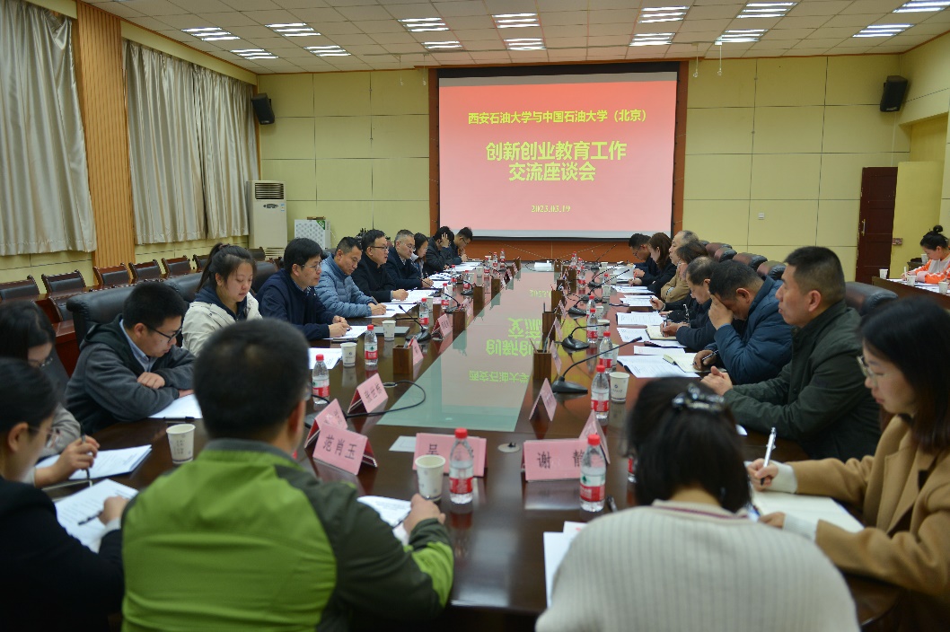 陳軍斌代表學(xué)校對(duì)中國(guó)石油大學(xué)(北京)領(lǐng)導(dǎo)一行的來(lái)訪(fǎng)表示歡迎。他簡(jiǎn)要介紹了學(xué)校近年來(lái)在創(chuàng)新創(chuàng)業(yè)教育與管理方面的建設(shè)情況和取得成果。他表示,西安石油大學(xué)和中國(guó)石油大學(xué)(北京)作為兄弟院校,具有相同行業(yè)背景,兩校有著深厚友誼和合作淵源,尤其克拉瑪依校區(qū)與學(xué)校同處西部,人才培養(yǎng)目標(biāo)相近,項(xiàng)目和平臺(tái)建設(shè)上有著良好合作基礎(chǔ)。他期待兩校進(jìn)一步加強(qiáng)交流合作,不斷強(qiáng)化兩校培養(yǎng)西部國(guó)家能源戰(zhàn)略人才力量的使命擔(dān)當(dāng)。在后續(xù)的創(chuàng)新創(chuàng)業(yè)教育工作開(kāi)展當(dāng)中,學(xué)校應(yīng)積極向中國(guó)石油大學(xué)(北京)學(xué)習(xí)借鑒優(yōu)秀的創(chuàng)新管理經(jīng)驗(yàn)與制度,建設(shè)更加完備的創(chuàng)新創(chuàng)業(yè)人才培養(yǎng)體系,在建設(shè)高質(zhì)量創(chuàng)新創(chuàng)業(yè)教育體系等方面邁上更高臺(tái)階。