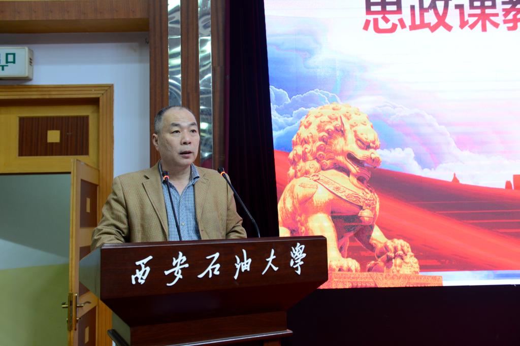 為深入學(xué)習(xí)貫徹黨的二十大精神,認(rèn)真落實(shí)習(xí)近平總書記在學(xué)校思想政治理論課教師座談會(huì)上的重要講話精神,充分發(fā)揮課堂教學(xué)主渠道在高校思想政治工作中的作用,扎實(shí)深入推進(jìn)學(xué)校課程思政建設(shè)工作,3月10日,我校思政課教師“大練兵”課程思政組展示活動(dòng)決賽在雁塔校區(qū)學(xué)術(shù)報(bào)告廳舉行?;顒?dòng)特邀請陜西師范大學(xué)教育學(xué)部傅鋼善教授,西北工業(yè)大學(xué)數(shù)學(xué)與統(tǒng)計(jì)學(xué)院孫浩教授、西北大學(xué)高等教育研究中心姚聰莉教授、西北工業(yè)大學(xué)馬克思主義學(xué)院賀苗教授、西安科技大學(xué)馬克思主義學(xué)院張銘鐘教授5位專家擔(dān)任評(píng)委。校長李天太、校黨委副書記張木、副校長陳軍斌出席活動(dòng),宣傳部、學(xué)生工作部、教師工作部、人事處、教務(wù)處、高教研究與評(píng)估中心及各院(系)主要負(fù)責(zé)人,學(xué)校各專業(yè)負(fù)責(zé)人、一流本科課程負(fù)責(zé)人、課程思政示范課團(tuán)隊(duì)成員及青年教師代表到場觀摩。活動(dòng)由陳軍斌主持。