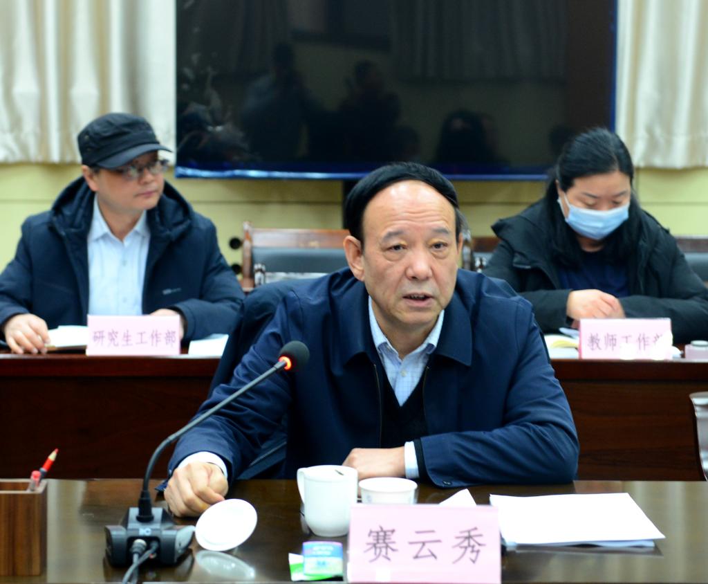 開班式結(jié)束后,校黨委書記賽云秀對(duì)全體參訓(xùn)學(xué)員提出了三點(diǎn)要求。一是要提高政治站位,深入學(xué)習(xí)貫徹黨的二十大精神,堅(jiān)持原原本本學(xué)、融會(huì)貫通悟、聯(lián)系實(shí)際思,深刻領(lǐng)悟“兩個(gè)確立”的決定性意義,增強(qiáng)“四個(gè)意識(shí)”、堅(jiān)定“四個(gè)自信”、做到“兩個(gè)維護(hù)”。二是要遵守培訓(xùn)紀(jì)律,發(fā)揮示范作用,要從講政治的高度、從推動(dòng)學(xué)校高質(zhì)量發(fā)展的大局來認(rèn)識(shí)這次培訓(xùn),妥善處理工學(xué)矛盾,起到帶頭示范作用。三是要深學(xué)細(xì)思踐悟,做到學(xué)以致用,不斷提升解決問題、應(yīng)對(duì)風(fēng)險(xiǎn)挑戰(zhàn)的能力,切實(shí)把學(xué)習(xí)成效轉(zhuǎn)化為推動(dòng)事業(yè)發(fā)展的強(qiáng)大動(dòng)力,持續(xù)推進(jìn)學(xué)校各項(xiàng)重點(diǎn)工作落地落實(shí),奮力推進(jìn)學(xué)校高質(zhì)量發(fā)展。