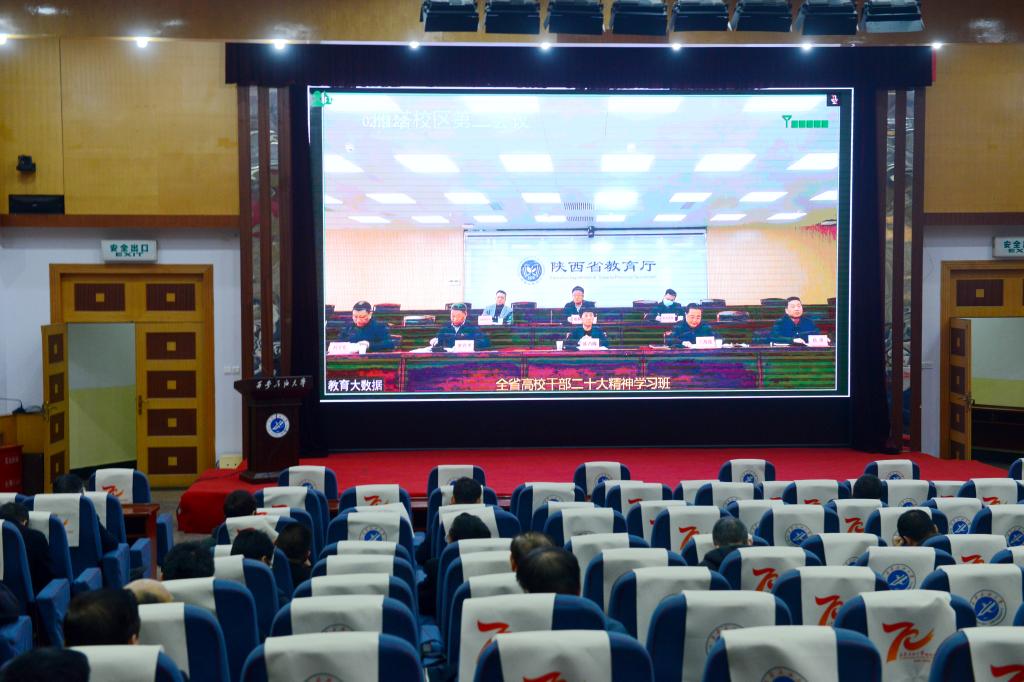 2月20日至24日,我校在雁塔校區(qū)和鄠邑校區(qū)同時(shí)設(shè)置分會(huì)場(chǎng),同步組織參加由省委教育工委主辦的全省高校領(lǐng)導(dǎo)干部學(xué)習(xí)貫徹黨的二十大精神專題學(xué)習(xí)班,學(xué)校全體校領(lǐng)導(dǎo)、處級(jí)干部參加培訓(xùn)。省委教育工委書記、省教育廳廳長(zhǎng)劉建林作開班動(dòng)員講話,省委教育工委副書記陳乃霞主持開班式并作總結(jié)講話,省委教育工委委員、省教育廳副廳長(zhǎng)王海波主持結(jié)業(yè)式。