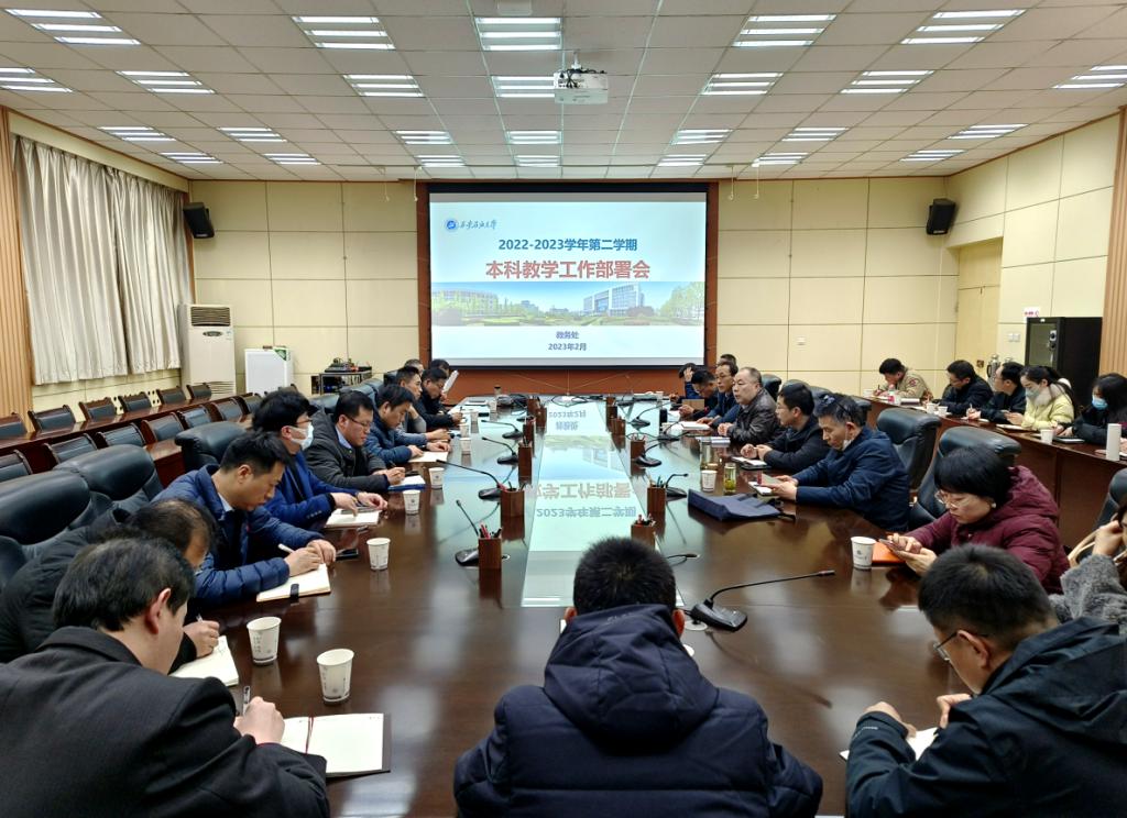 陳軍斌指出,各教學(xué)單位要按照學(xué)校春季開學(xué)工作的總體要求,扎實(shí)做好新學(xué)期各項(xiàng)教學(xué)準(zhǔn)備工作,進(jìn)一步細(xì)化春季學(xué)期本科教學(xué)工作任務(wù),確保各項(xiàng)工作平穩(wěn)有序進(jìn)行。他強(qiáng)調(diào),一是各院(系)要高度重視上學(xué)期課程考核工作,結(jié)合學(xué)生上學(xué)期學(xué)習(xí)實(shí)際,精心組織開展線下串講和輔導(dǎo)答疑,合理安排公共課程和專業(yè)課程考試,同時(shí)加快進(jìn)度補(bǔ)足補(bǔ)齊實(shí)驗(yàn)實(shí)習(xí)等實(shí)踐教學(xué)環(huán)節(jié),確保各項(xiàng)教學(xué)工作高質(zhì)量完成。二是加強(qiáng)招生宣傳與錄取工作,招生工作是立德樹人的起點(diǎn),優(yōu)質(zhì)生源是人才培養(yǎng)質(zhì)量的基礎(chǔ),要不斷創(chuàng)新工作思路,豐富宣傳方式,強(qiáng)化生源基地建設(shè),總結(jié)凝練專業(yè)特色與人才培養(yǎng)成效,增強(qiáng)學(xué)校影響力,提升宣傳實(shí)效,貫徹招生宣傳永遠(yuǎn)在路上的理念。三是深化教育教學(xué)改革,聚焦本科教學(xué)核心指標(biāo),督導(dǎo)檢查教改項(xiàng)目落實(shí)進(jìn)度,強(qiáng)化一流專業(yè)建設(shè),以課程建設(shè)為突破口,積極籌備一流課程申報(bào),全面推進(jìn)課程思政建設(shè),打造優(yōu)秀課程教學(xué)團(tuán)隊(duì),加強(qiáng)一流教材申報(bào)與建設(shè),提前謀劃精準(zhǔn)施策,統(tǒng)籌做好申報(bào)各環(huán)節(jié)工作,持續(xù)推進(jìn)工程教育專業(yè)認(rèn)證工作,加強(qiáng)實(shí)驗(yàn)教學(xué)平臺(tái)建設(shè),著力培育高水平教學(xué)成果,推動(dòng)本科教育高質(zhì)量發(fā)展。四是圍繞新一輪本科教育教學(xué)審核評(píng)估指標(biāo)體系,制定學(xué)校工作體系和實(shí)施方案,扎實(shí)做好基礎(chǔ)數(shù)據(jù)統(tǒng)計(jì)工作,對(duì)標(biāo)對(duì)本籌備自評(píng)報(bào)告,提出問(wèn)題清單,組織學(xué)習(xí)審核評(píng)估指標(biāo)體系,查缺補(bǔ)漏著手準(zhǔn)備基層教學(xué)資料歸檔工作。五是以審核評(píng)估指標(biāo)體系為依據(jù),做好教學(xué)經(jīng)費(fèi)預(yù)算,全力保障實(shí)驗(yàn)室建設(shè)、教學(xué)日常運(yùn)行及教學(xué)資源條件,同時(shí)保證經(jīng)費(fèi)投入的合理性、使用的有效性以及管理的規(guī)范性。六是扎實(shí)推進(jìn)師德教風(fēng)建設(shè),牢固樹立教師師德底線意識(shí),嚴(yán)肅教風(fēng)教紀(jì),愛業(yè)愛生,身體力行,爭(zhēng)做“德高為師,身正為范”以及“四有”好老師。七是各級(jí)教學(xué)管理人員要嚴(yán)于律己,加強(qiáng)學(xué)習(xí),以身作則,提高教學(xué)管理水平,增強(qiáng)統(tǒng)籌協(xié)調(diào)、系統(tǒng)謀劃能力,做到“勤思考、勤動(dòng)手、勤動(dòng)嘴、勤動(dòng)腿”,深入課堂一線,深入基層教學(xué)組織,善于在細(xì)微處發(fā)現(xiàn)問(wèn)題解決問(wèn)題,以高效的教學(xué)管理促進(jìn)教學(xué)質(zhì)量有力提升。