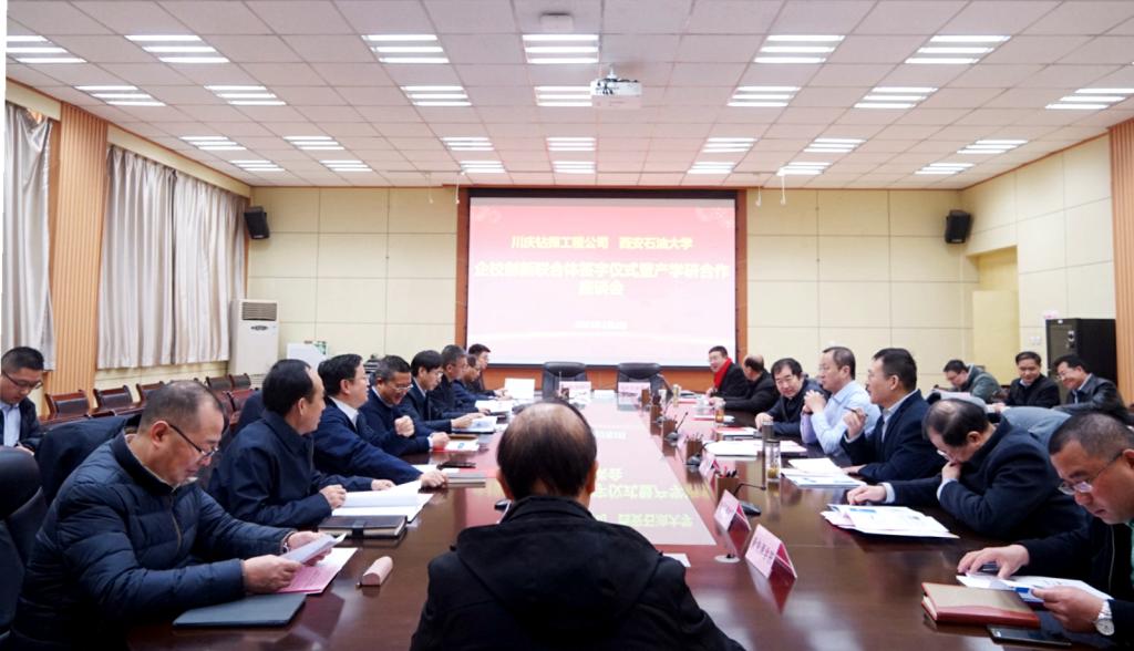 川慶鉆探工程有限公司科技處、長(zhǎng)慶鉆井總公司、鉆采工程技術(shù)研究院、長(zhǎng)慶井下技術(shù)作業(yè)公司、試修公司、長(zhǎng)慶固井公司等業(yè)務(wù)板塊負(fù)責(zé)人及技術(shù)骨干,我校黨政辦公室、科技處(科技成果轉(zhuǎn)移轉(zhuǎn)化中心)、合作發(fā)展處、石油工程學(xué)院、地球科學(xué)與工程學(xué)院、化學(xué)化工學(xué)院、電子工程學(xué)院、機(jī)械工程學(xué)院、新能源學(xué)院負(fù)責(zé)人參加了上述活動(dòng)。