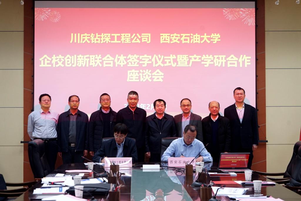 2月2日上午,我校與川慶鉆探工程有限公司在雁塔校區(qū)第一會(huì)議室舉行創(chuàng)新聯(lián)合體共建協(xié)議簽字儀式暨產(chǎn)學(xué)研合作座談會(huì)。川慶鉆探工程有限公司副總經(jīng)理孫虎、企業(yè)首席專家李曉明,我校校長(zhǎng)李天太出席會(huì)議。會(huì)議由副校長(zhǎng)張榮軍主持。