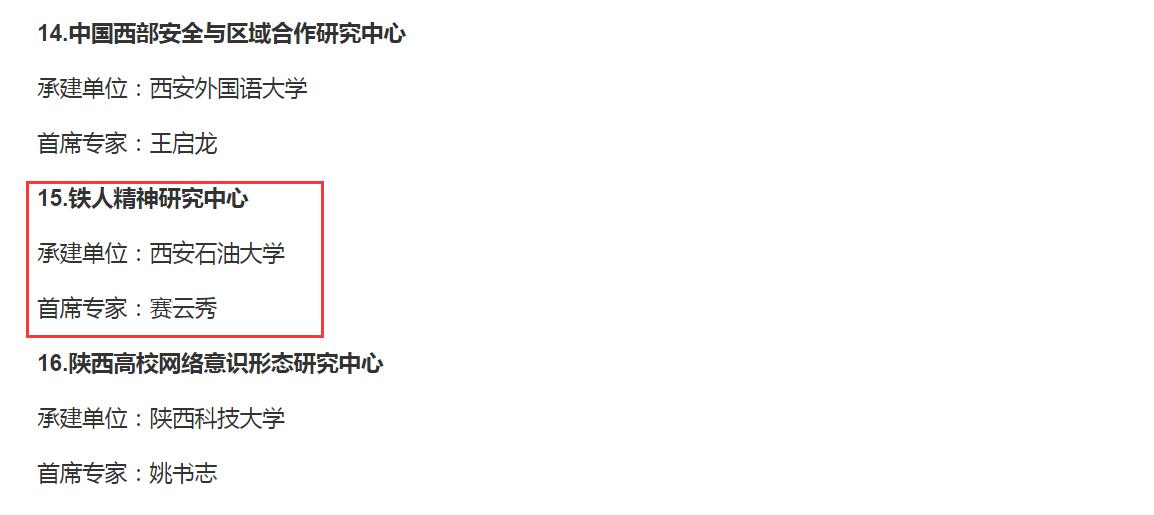 據(jù)悉,為深入貫徹落實習(xí)近平總書記關(guān)于加強智庫建設(shè)的指示精神以及中央和省委關(guān)于加快構(gòu)建中國特色哲學(xué)社會科學(xué)的文件精神,省委宣傳部組織開展了第四批陜西省哲學(xué)社會科學(xué)重點研究基地遴選工作。經(jīng)學(xué)校推薦、資格審查、專家評審、實地考察、遴選公示等相關(guān)工作程序,并報省委宣傳部領(lǐng)導(dǎo)審定,包含我校“鐵人精神研究中心”在內(nèi)的18個基地被確立為第四批陜西省哲學(xué)社會科學(xué)重點研究基地。