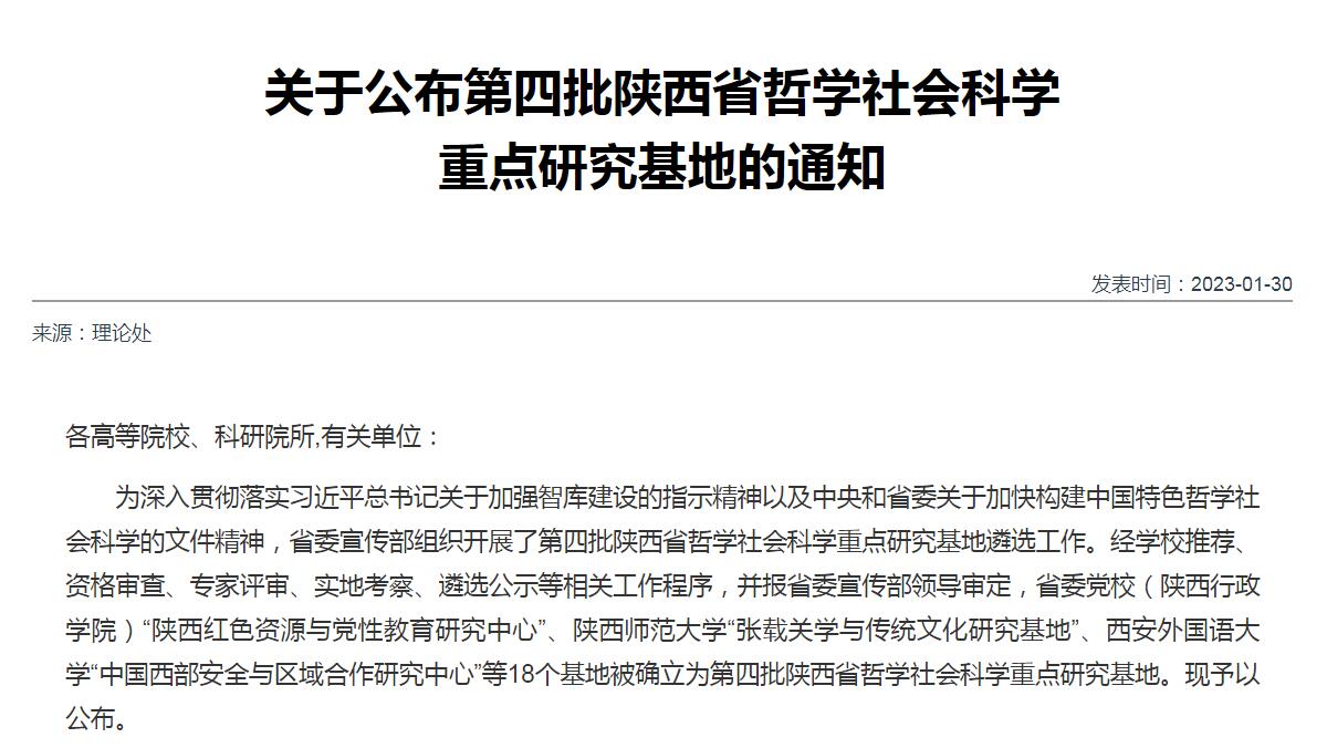 近日,省委宣傳部發(fā)布了《關(guān)于公布第四批陜西省哲學(xué)社會科學(xué)重點研究基地的通知》,我校馬克思主義學(xué)院牽頭申報的“鐵人精神研究中心”被確立為第四批陜西省哲學(xué)社會科學(xué)重點研究基地。