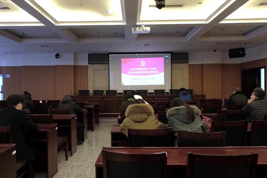 12月2日下午,學(xué)校以線上線下相結(jié)合的方式,舉行學(xué)習(xí)貫徹黨的二十大精神宣講報(bào)告會(huì)。學(xué)習(xí)貫徹黨的二十大精神學(xué)校宣講團(tuán)成員、校黨委書記賽云秀作宣講。會(huì)議由校黨委副書記、校長(zhǎng)李天太主持。