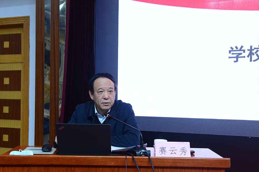 賽云秀強(qiáng)調(diào),黨的二十大報(bào)告提出“堅(jiān)持教育優(yōu)先發(fā)展、科技自立自強(qiáng)、人才引領(lǐng)驅(qū)動(dòng),深入實(shí)施科教興國(guó)戰(zhàn)略、人才強(qiáng)國(guó)戰(zhàn)略、創(chuàng)新驅(qū)動(dòng)發(fā)展戰(zhàn)略”,這對(duì)教育事業(yè)發(fā)展既是引領(lǐng),又是召喚,更賦予了機(jī)遇。學(xué)校要堅(jiān)持立德樹人根本任務(wù),用習(xí)近平新時(shí)代中國(guó)特色社會(huì)主義思想鑄魂育人;要堅(jiān)持服務(wù)經(jīng)濟(jì)社會(huì)發(fā)展,找準(zhǔn)主攻方向、聚焦重點(diǎn)任務(wù),在服務(wù)國(guó)家戰(zhàn)略、推動(dòng)區(qū)域經(jīng)濟(jì)發(fā)展、參與鄉(xiāng)村振興中體現(xiàn)擔(dān)當(dāng)、踐行使命;要加快推進(jìn)高質(zhì)量發(fā)展,緊抓振興中西部高等教育機(jī)遇,優(yōu)化布局、調(diào)整學(xué)科專業(yè),建優(yōu)建強(qiáng)特色優(yōu)勢(shì)學(xué)科群,集中優(yōu)勢(shì)資源,科學(xué)精準(zhǔn)有效推動(dòng)建設(shè)。