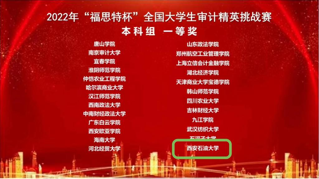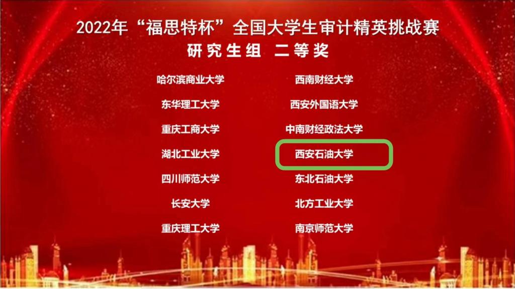 本次比賽采用線上的方式進(jìn)行,來自西南財(cái)經(jīng)大學(xué)、南京審計(jì)大學(xué)、中南財(cái)經(jīng)政法大學(xué)、上海立信會(huì)計(jì)金融學(xué)院、東北石油大學(xué)等340所院校的390支隊(duì)伍參加了本次比賽,1800余名師生同臺(tái)競技,其中研究生組72支代表隊(duì),本科組258支代表隊(duì),高職組60支代表隊(duì)。我校經(jīng)濟(jì)管理學(xué)院會(huì)計(jì)系黃莉老師指導(dǎo)的2019級(jí)本科生李文文、吳珊珊、李洋獲得本科生組一等獎(jiǎng),黃莉、侯曉靖老師指導(dǎo)的2022級(jí)研究生王萍、王嚴(yán)、白玉獲得研究生組二等獎(jiǎng),為我校參加該項(xiàng)賽事以來取得的最好成績。