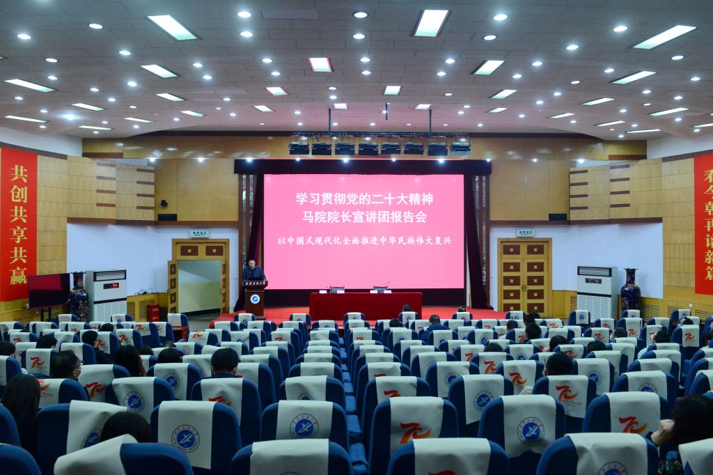 雷西合在主持報(bào)告會(huì)時(shí)指出,報(bào)告主題鮮明、內(nèi)容充實(shí)、準(zhǔn)確深刻,政治性、思想性、針對(duì)性、指導(dǎo)性強(qiáng),對(duì)全面學(xué)習(xí)把握黨的二十大精神是一次深入輔導(dǎo)和有力推動(dòng)。他強(qiáng)調(diào),學(xué)習(xí)好、宣傳好、貫徹好黨的二十大精神是學(xué)校當(dāng)前和今后一個(gè)時(shí)期的首要政治任務(wù)。廣大師生要落實(shí)習(xí)近平總書記“三個(gè)全面”的總體要求,在全面學(xué)習(xí)、全面把握、全面落實(shí)上下功夫。一要進(jìn)一步提高政治站位,原原本本學(xué)習(xí)研讀黨的二十大報(bào)告和新修訂的黨章,準(zhǔn)確領(lǐng)會(huì)精神實(shí)質(zhì)和核心要義,深刻領(lǐng)悟“兩個(gè)確立”的決定性意義,增強(qiáng)“四個(gè)意識(shí)”、堅(jiān)定“四個(gè)自信”、做到“兩個(gè)維護(hù)”。二要堅(jiān)定理想信念,勇挑時(shí)代重?fù)?dān),珍惜美好時(shí)光,練就過硬本領(lǐng),既懷抱夢(mèng)想又腳踏實(shí)地,學(xué)用結(jié)合、知行合一,把個(gè)人理想追求融入民族復(fù)興偉大征程。三要注重發(fā)揮優(yōu)勢(shì),思政隊(duì)伍、學(xué)工干部和師生黨員要充分發(fā)揮專業(yè)優(yōu)勢(shì)、工作優(yōu)勢(shì)和生活優(yōu)勢(shì),做好黨的二十大精神的宣傳宣講工作,堅(jiān)定推動(dòng)學(xué)習(xí)宣傳貫徹黨的二十大精神走深走實(shí),見行見效,助力學(xué)校各項(xiàng)事業(yè)高質(zhì)量發(fā)展。