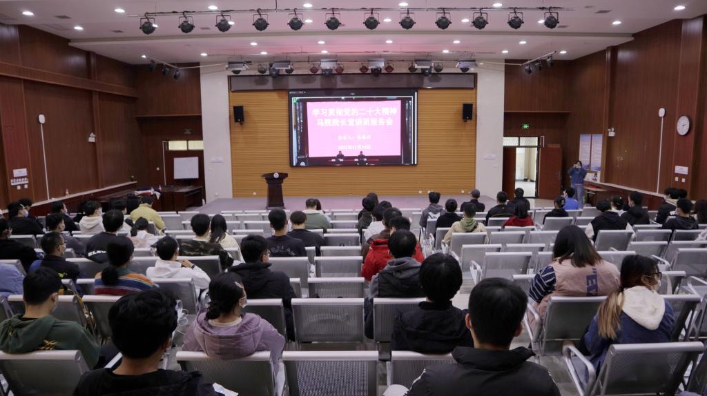張海濤教授從黨的二十大的主題和主要成果、過去5年的工作和新時(shí)代10年的偉大變革、馬克思主義中國(guó)化時(shí)代化、中國(guó)式現(xiàn)代化、全面建設(shè)社會(huì)主義現(xiàn)代化國(guó)家的目標(biāo)任務(wù)、堅(jiān)持黨的全面領(lǐng)導(dǎo)和全面從嚴(yán)治黨、應(yīng)對(duì)風(fēng)險(xiǎn)挑戰(zhàn)七個(gè)方面,對(duì)黨的二十大精神作了宣講。在宣講過程中,張海濤緊密聯(lián)系實(shí)際,結(jié)合發(fā)展的成果、詳實(shí)的數(shù)據(jù),對(duì)黨的二十大提出的新思想新論斷、作出的新部署新要求進(jìn)行了系統(tǒng)講解和深入闡釋,引導(dǎo)廣大師生深刻領(lǐng)悟黨的二十大精神的豐富內(nèi)涵和實(shí)踐要求。