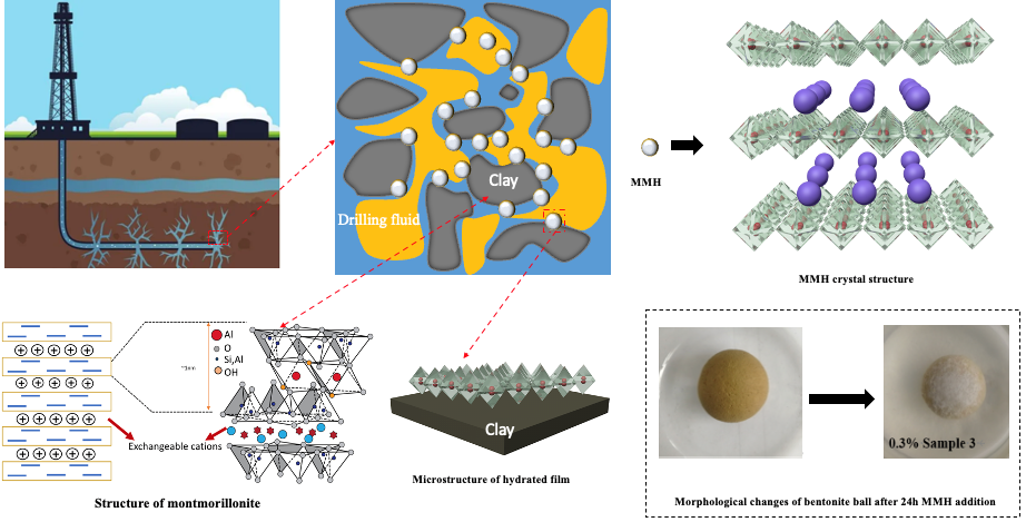 該課題組同時(shí)對(duì)抗高溫環(huán)保型鉆井液抑制劑進(jìn)行了研究,在現(xiàn)有鎂鋁插層聚合物(MMH)的基礎(chǔ)上,優(yōu)化制備條件,如圖2所示。當(dāng)鎂鋁比為3時(shí)插層聚合物表現(xiàn)出優(yōu)異的性能,在鉆井液中添加量為0.3%時(shí)鉆井液的抑制性能參數(shù)較添加4%KCl的鉆井液提高了136.2%。經(jīng)過200℃老化16h后,添加了鎂鋁插層聚合物的鉆井液仍表現(xiàn)出良好的抑制性和提切性。(Minerals2022, 12(4), 459.論文鏈接:https://doi.org/10.3390/min12040459)