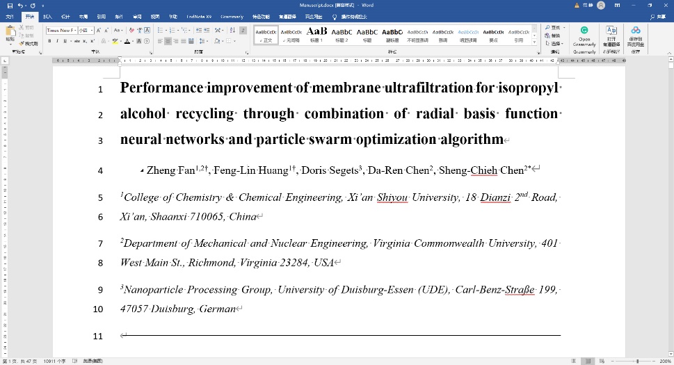 在上述研究基礎上,該科研團隊的最新研究成果和論文《Performance improvement of membrane ultrafiltration for isopropyl alcohol recycling through combination of radial basis function neural networks and particle swarm optimization algorithm》也已通過《Journal of Membrane Science》審稿和錄用,預計將于明年正式發(fā)表。