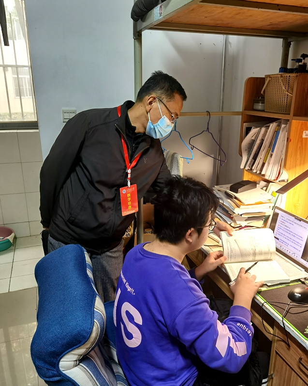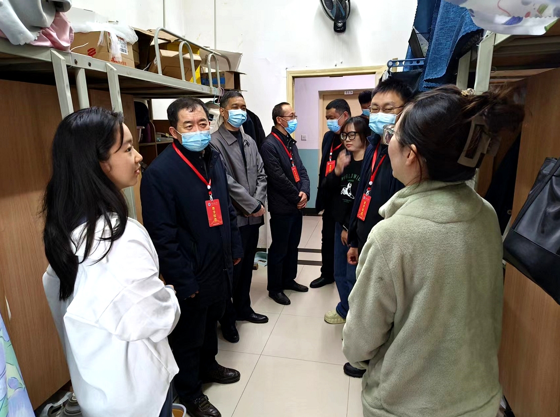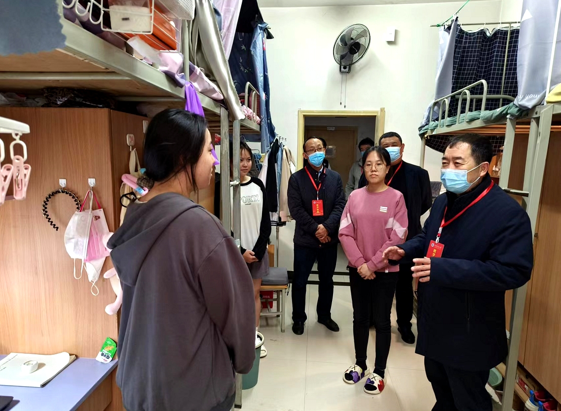 在疫情防控形勢(shì)復(fù)雜嚴(yán)峻的特殊時(shí)期,為深入了解校園封閉管理期間本科生、研究生在宿舍的線上教學(xué)及生活情況,掌握學(xué)生的思想狀態(tài),10月24日上午,校長(zhǎng)李天太、校黨委副書(shū)記張木深入學(xué)生宿舍,檢查線上教學(xué)情況,并給學(xué)生們送去殷切關(guān)懷和深切慰問(wèn)。教務(wù)處、研究生院、學(xué)生工作處、團(tuán)委、信息化建設(shè)與管理處以及各院(系)相關(guān)負(fù)責(zé)人隨同參加。