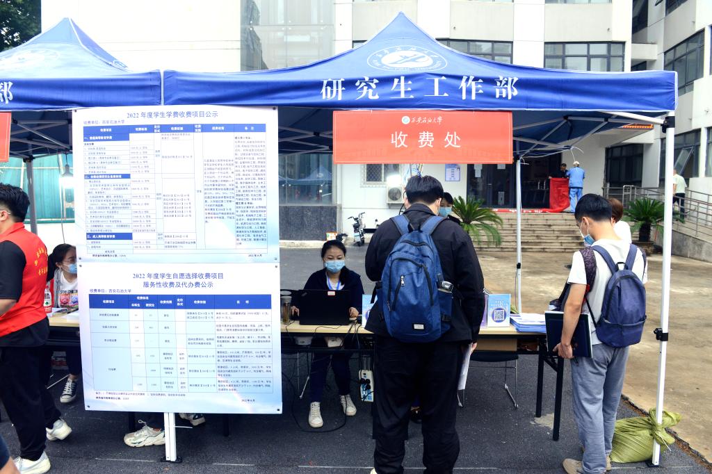 學(xué)校對新生入學(xué)和疫情防控工作高度重視,召開專題會議安排部署相關(guān)工作,校黨委書記賽云秀、校長李天太等黨政領(lǐng)導(dǎo)多次親臨現(xiàn)場看望2022級新生并慰問迎新工作人員。迎新期間,學(xué)校專門設(shè)立綠色通道服務(wù)站,確保2022級家庭經(jīng)濟(jì)存在困難的學(xué)生全部順利入學(xué)。同時在雁塔、明德校區(qū)設(shè)立目的地付費(fèi)處,為符合報銷條件的新生報銷打車費(fèi)。機(jī)關(guān)黨委慰問鄠邑校區(qū)174位一線工作人員,共發(fā)放180箱牛奶、850個面包、70箱方便面和70箱火腿腸。后勤處堅守在交通場站、被褥發(fā)放點(diǎn)和免費(fèi)服務(wù)點(diǎn),嚴(yán)格按照疫情防控要求開展工作。保衛(wèi)處負(fù)責(zé)掃碼測溫、查驗(yàn)“兩碼”和入校審批手續(xù)、行李消殺、交通秩序維護(hù)等工作,全力為新生入?!暗谝魂P(guān)”保駕護(hù)航。財務(wù)處負(fù)責(zé)新生學(xué)費(fèi)收繳、政策咨詢、校園一卡通預(yù)充值等工作,通過微信公眾號和“校園安心付”APP等方式開展繳費(fèi),簡便快捷。校醫(yī)院有序開展核酸檢測和新生體檢工作,確保師生健康安全。