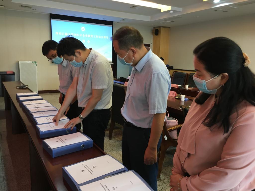 9月15日上午,陜西省教育工作綜合督導(dǎo)高校第七組組長、省委教育工委、省教育廳二級巡視員關(guān)荷,成員西安市市場監(jiān)管局專家寇安霞、長安大學(xué)網(wǎng)信專家李坤倫、陜西省結(jié)核病防治研究所主治醫(yī)師馬煜等一行8人來校開展2022年教育工作綜合督導(dǎo)。督導(dǎo)對接見面會在鄠邑校區(qū)圖書館第一會議室舉行,校長李天太、副校長楊戰(zhàn)社出席見面會。見面會由校黨委副書記張木主持。