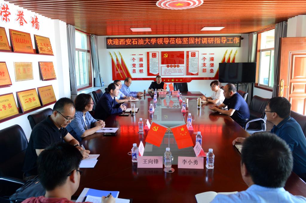 調(diào)研期間,李天太一行來到堅(jiān)固村的面粉加工廠、養(yǎng)牛場(chǎng),調(diào)研村級(jí)產(chǎn)業(yè)發(fā)展,考察鄉(xiāng)村振興進(jìn)展情況,并就鄉(xiāng)村振興、校地融合發(fā)展等方面與永壽縣委書記王飛、縣委組織部部長(zhǎng)魏國(guó)鵬、副縣長(zhǎng)范啟新、永平鎮(zhèn)和堅(jiān)固村的負(fù)責(zé)人進(jìn)行了座談。
