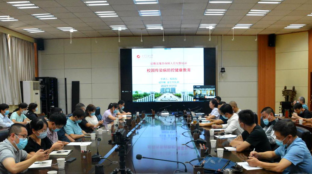 為進(jìn)一步做好疫情防控工作,提高全體后勤保障人員的校園傳染病處置能力,筑牢校園疫情防控“安全墻”,增強(qiáng)全體“大后勤”職工、各崗位從業(yè)人員對(duì)新冠疫情防控、常見傳染病的預(yù)防意識(shí)和防護(hù)技能,切實(shí)保障學(xué)校全體師生的身體健康和生命安全,9月1日下午,我?!靶@傳染病防控健康教育”專題培訓(xùn)會(huì)在雁塔、鄠邑兩校區(qū)采取“線上+線下”形式同步進(jìn)行。副校長(zhǎng)蘇文甫參會(huì)并講話。培訓(xùn)會(huì)由后勤處處長(zhǎng)茍金虎主持。