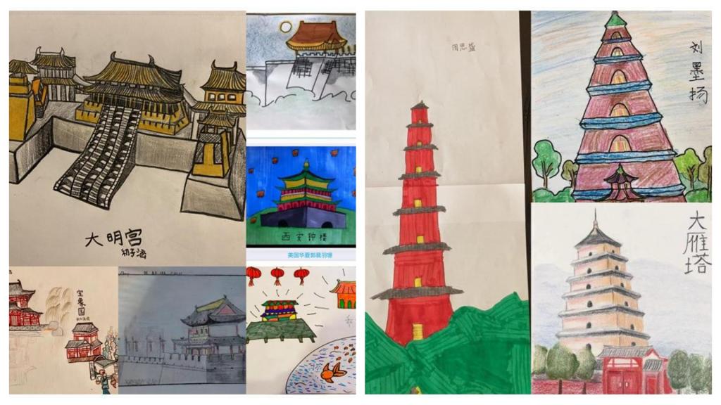 這10天的云端學(xué)習(xí),小營員們在老師的帶領(lǐng)下,云游在中華五千年悠久歷史文明的長河中,學(xué)習(xí)以長安為都城的漢、唐兩朝有趣的歷史故事,了解歷史典故;學(xué)習(xí)書法、剪紙、太極拳和古箏,感受妙趣橫生的中華傳統(tǒng)文化;云游長安城,打卡西安城墻、書院門、鐘樓等,聆聽西安的人文故事,探尋長安城的變遷;云端探尋回民街、品味一碗羊肉泡饃里的市井煙火;走進(jìn)王進(jìn)喜鐵人紀(jì)念館,聆聽石油背后的故事,感知永不言棄的鐵人精神。小營員們在認(rèn)真學(xué)習(xí)的基礎(chǔ)上,做到學(xué)有所思,學(xué)有所獲,學(xué)有所悟,通過錄制音頻、視頻、繪畫圖文等方式制作完成各種打卡作品,增加了小營員們的參與感和對中華傳統(tǒng)藝術(shù)的興趣,更加深刻地感受中華傳統(tǒng)文化的魅力,每個人都力爭成為中華優(yōu)秀傳統(tǒng)文化的小小傳播者。