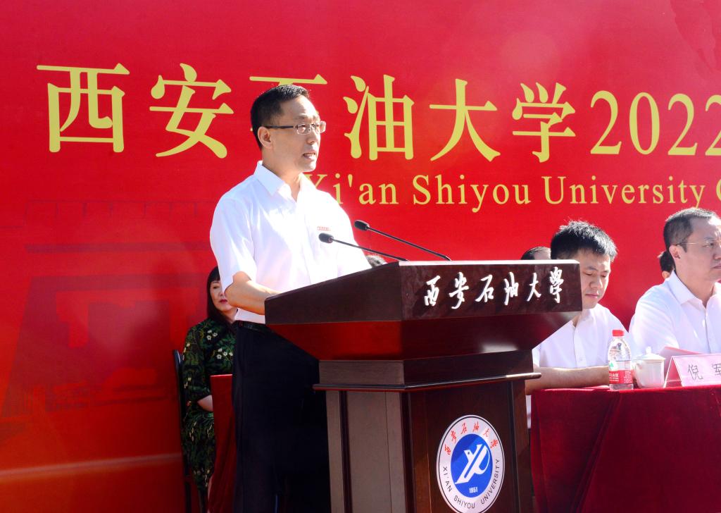 優(yōu)秀校友代表、石油工程學院油氣田開發(fā)專業(yè)2008屆碩士畢業(yè)生,陜西延長石油集團公司研究院科研部部長、陜西省中青年科技領軍人才、教授級高工倪軍向畢業(yè)生贈言,他通過分享自己的學習成長經(jīng)歷和科研工作感受,表達了對母校的感激之情,并向畢業(yè)生作了真摯贈言,希望同學們在將來的學習科研及工作中持之以恒、積極進取、不忘初心,始終堅持夢想。