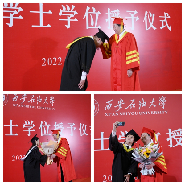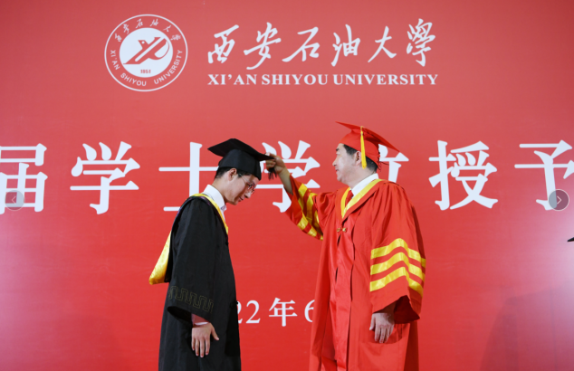 6月27日上午,西安石油大學(xué)2022屆優(yōu)秀畢業(yè)生代表學(xué)士學(xué)位授予儀式在鄠邑校區(qū)弘石學(xué)術(shù)報告廳隆重舉行。校長、校學(xué)位評定委員會主席李天太,副校長、校學(xué)位評定委員會副主席陳軍斌出席學(xué)士學(xué)位授予儀式。學(xué)士學(xué)位授予儀式由校黨委副書記、校學(xué)位評定委員會副主席張木主持。鄠邑校區(qū)管理辦公室、學(xué)生工作處、教務(wù)處等相關(guān)職能部門負(fù)責(zé)人、各院(系)負(fù)責(zé)人、208名優(yōu)秀畢業(yè)生代表參加授位儀式。