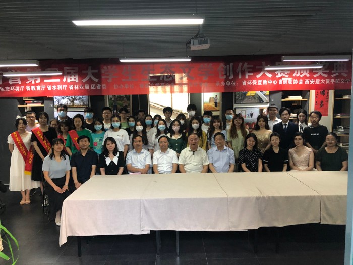 大賽主辦方先后舉行了線下和線上兩場頒獎典禮。6月2日,在2022年陜西省“六五環(huán)境日”主題宣傳活動啟動儀式上,省人大環(huán)資工委主任龔曉燕、省人大常委會副秘書長井劍萍等領(lǐng)導(dǎo)為陜西省第三屆大學(xué)生生態(tài)文學(xué)創(chuàng)作大賽獲獎?wù)叽眍C發(fā)獲獎證書。6月12日,大賽主辦方在西安建筑科技大學(xué)賈平凹文學(xué)藝術(shù)館舉行線上頒獎典禮。