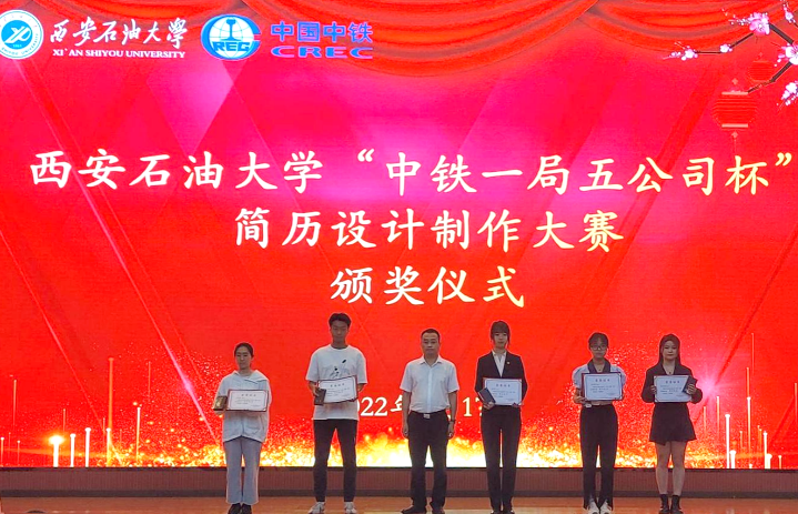 為有效提升我校學(xué)生的簡歷設(shè)計制作能力,引導(dǎo)學(xué)生樹立科學(xué)的崗位認知,6月17日下午,由陜西省普通高等學(xué)校畢業(yè)生就業(yè)服務(wù)中心主辦、我校和中鐵一局集團第五工程公司承辦的“中鐵一局五公司杯”簡歷設(shè)計制作大賽頒獎儀式在我校鄠邑校區(qū)弘石學(xué)術(shù)報告廳舉行。中鐵一局集團第五工程有限公司副總經(jīng)理黃曉春,我校學(xué)生工作部(處)、教務(wù)處相關(guān)負責(zé)人出席頒獎儀式。